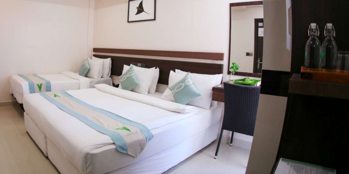 The Deluxe Seaview room at the White Harp hotel offers full windows facing the ocean and the beach, strategic lighting, a comfortable queen sized double bed, a spacious bathroom, LED TV, and all of White Harp Hotel’s basic amenities. Experience the sunrise like never before as the early morning rays shed light on the beautiful Maldivian colors.